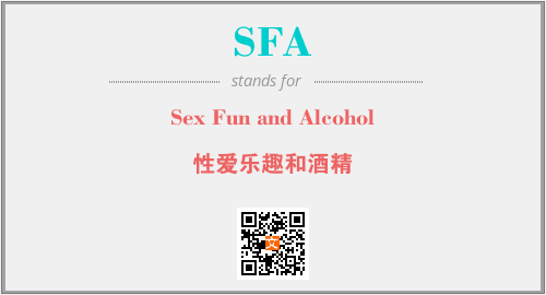 以上为Sex Fun and Alcohol英文缩略词SFA的中文解释,以及该英文缩写在英语的流行度、分类和应用领域方面的信息。