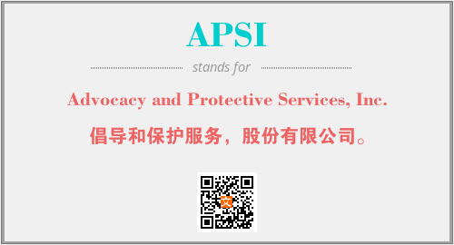 上述内容是“Advocacy and Protective Services, Inc.”作为“APSI”的缩写,解释为“倡导和保护服务,股份有限公司。”时的信息,以及英文缩略词APSI所代表的英文单词,其对应的中文拼音、详细解释以及在英文中的流行度和相关分类、应用领域及应用示例等。