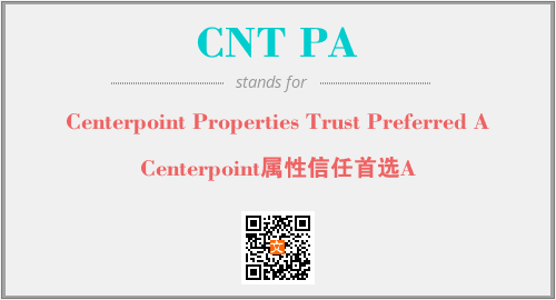 上述内容是“Centerpoint Properties Trust Preferred A”作为“CNT PA”的缩写,解释为“Centerpoint属性信任首选A”时的信息,以及英文缩略词CNT PA所代表的英文单词,其对应的中文拼音、详细解释以及在英文中的流行度和相关分类、应用领域及应用示例等。