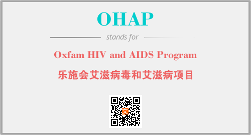上述内容是“Oxfam HIV and AIDS Program”作为“OHAP”的缩写,解释为“乐施会艾滋病毒和艾滋病项目”时的信息,以及英文缩略词OHAP所代表的英文单词,其对应的中文拼音、详细解释以及在英文中的流行度和相关分类、应用领域及应用示例等。