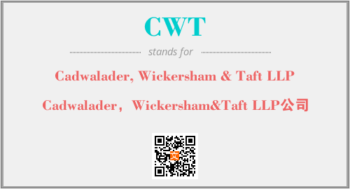 以上为Cadwalader, Wickersham & Taft LLP英文缩略词CWT的中文解释,以及该英文缩写在英语的流行度、分类和应用领域方面的信息。