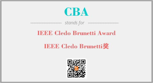 上述内容是“IEEE Cledo Brunetti Award”作为“CBA”的缩写,解释为“IEEE Cledo Brunetti奖”时的信息,以及英文缩略词CBA所代表的英文单词,其对应的中文拼音、详细解释以及在英文中的流行度和相关分类、应用领域及应用示例等。