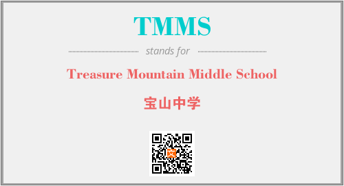 英文缩略词“TMMS”经常作为“Treasure Mountain Middle School”的英文缩写来使用,中文表示:“宝山中学”。本文将详细介绍英文缩写词TMMS所代表英文单词,其对应的中文拼音、详细解释以及在英语中的流行度。此外,还有关于缩略词TMMS的分类、应用领域及相关应用示例等。