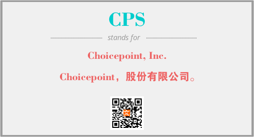 上述内容是“Choicepoint, Inc.”作为“CPS”的缩写,解释为“Choicepoint,股份有限公司。”时的信息,以及英文缩略词CPS所代表的英文单词,其对应的中文拼音、详细解释以及在英文中的流行度和相关分类、应用领域及应用示例等。