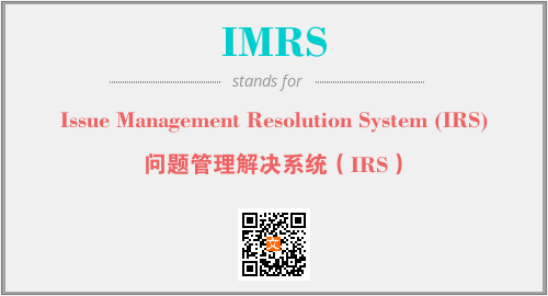 以上为Issue Management Resolution System (IRS)英文缩略词IMRS的中文解释,以及该英文缩写在英语的流行度、分类和应用领域方面的信息。