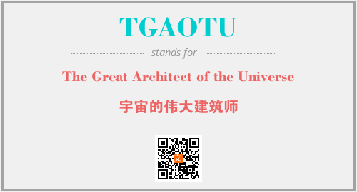 英文缩略词“TGAOTU”经常作为“The Great Architect of the Universe”的英文缩写来使用,中文表示:“宇宙的伟大建筑师”。本文将详细介绍英文缩写词TGAOTU所代表英文单词,其对应的中文拼音、详细解释以及在英语中的流行度。此外,还有关于缩略词TGAOTU的分类、应用领域及相关应用示例等。