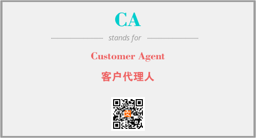 英文缩略词“CA”经常作为“Customer Agent”的英文缩写来使用,中文表示:“客户代理人”。本文将详细介绍英文缩写词CA所代表英文单词,其对应的中文拼音、详细解释以及在英语中的流行度。此外,还有关于缩略词CA的分类、应用领域及相关应用示例等。