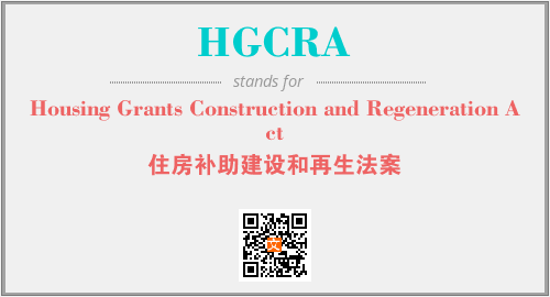 以上为Housing Grants Construction and Regeneration Act英文缩略词HGCRA的中文解释,以及该英文缩写在英语的流行度、分类和应用领域方面的信息。