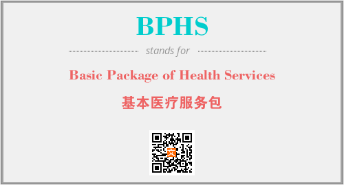 上述内容是“Basic Package of Health Services”作为“BPHS”的缩写,解释为“基本医疗服务包”时的信息,以及英文缩略词BPHS所代表的英文单词,其对应的中文拼音、详细解释以及在英文中的流行度和相关分类、应用领域及应用示例等。