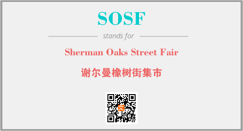 英文缩略词“SOSF”经常作为“Sherman Oaks Street Fair”的英文缩写来使用,中文表示:“谢尔曼橡树街集市”。本文将详细介绍英文缩写词SOSF所代表英文单词,其对应的中文拼音、详细解释以及在英语中的流行度。此外,还有关于缩略词SOSF的分类、应用领域及相关应用示例等。