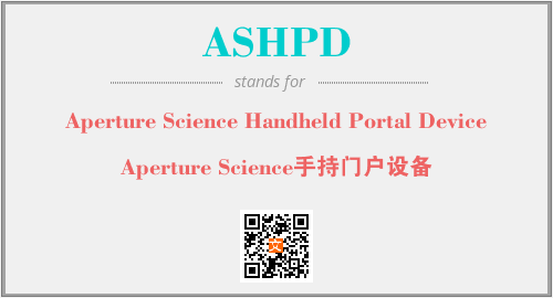 英文缩略词“ASHPD”经常作为“Aperture Science Handheld Portal Device”的英文缩写来使用,中文表示:“Aperture Science手持门户设备”。本文将详细介绍英文缩写词ASHPD所代表英文单词,其对应的中文拼音、详细解释以及在英语中的流行度。此外,还有关于缩略词ASHPD的分类、应用领域及相关应用示例等。