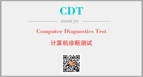 英文缩略词“CDT”经常作为“Computer Diagnostics Test”的英文缩写来使用,中文表示:“计算机诊断测试”。本文将详细介绍英文缩写词CDT所代表英文单词,其对应的中文拼音、详细解释以及在英语中的流行度。此外,还有关于缩略词CDT的分类、应用领域及相关应用示例等。