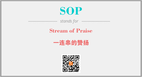 以上为Stream of Praise英文缩略词SOP的中文解释,以及该英文缩写在英语的流行度、分类和应用领域方面的信息。