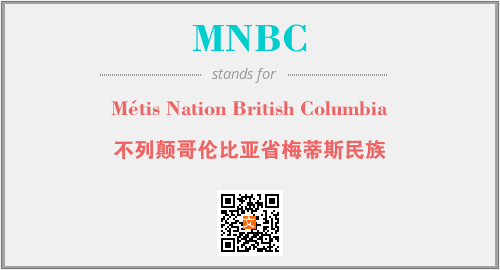 上述内容是“Métis Nation British Columbia”作为“MNBC”的缩写,解释为“不列颠哥伦比亚省梅蒂斯民族”时的信息,以及英文缩略词MNBC所代表的英文单词,其对应的中文拼音、详细解释以及在英文中的流行度和相关分类、应用领域及应用示例等。