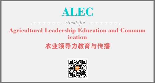 英文缩略词“ALEC”经常作为“Agricultural Leadership Education and Communication”的英文缩写来使用,中文表示:“农业领导力教育与传播”。本文将详细介绍英文缩写词ALEC所代表英文单词,其对应的中文拼音、详细解释以及在英语中的流行度。此外,还有关于缩略词ALEC的分类、应用领域及相关应用示例等。
