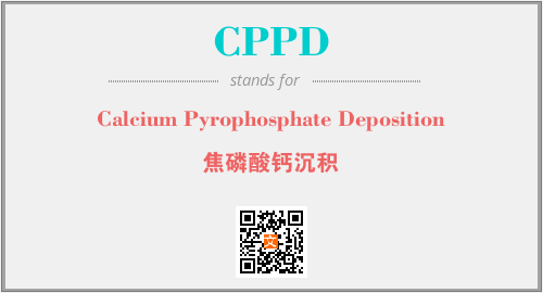 上述内容是“Calcium Pyrophosphate Deposition”作为“CPPD”的缩写,解释为“焦磷酸钙沉积”时的信息,以及英文缩略词CPPD所代表的英文单词,其对应的中文拼音、详细解释以及在英文中的流行度和相关分类、应用领域及应用示例等。