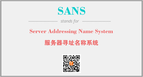英文缩略词“SANS”经常作为“Server Addressing Name System”的英文缩写来使用,中文表示:“服务器寻址名称系统”。本文将详细介绍英文缩写词SANS所代表英文单词,其对应的中文拼音、详细解释以及在英语中的流行度。此外,还有关于缩略词SANS的分类、应用领域及相关应用示例等。