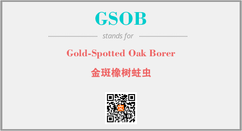 上述内容是“Gold-Spotted Oak Borer”作为“GSOB”的缩写,解释为“金斑橡树蛀虫”时的信息,以及英文缩略词GSOB所代表的英文单词,其对应的中文拼音、详细解释以及在英文中的流行度和相关分类、应用领域及应用示例等。