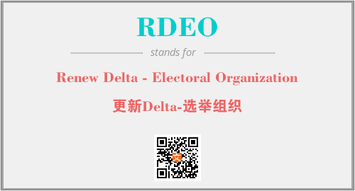 上述内容是“Renew Delta - Electoral Organization”作为“RDEO”的缩写,解释为“更新Delta-选举组织”时的信息,以及英文缩略词RDEO所代表的英文单词,其对应的中文拼音、详细解释以及在英文中的流行度和相关分类、应用领域及应用示例等。