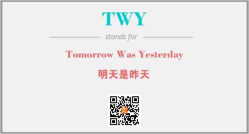 以上为Tomorrow Was Yesterday英文缩略词TWY的中文解释,以及该英文缩写在英语的流行度、分类和应用领域方面的信息。