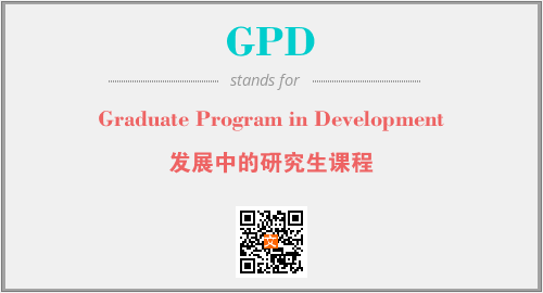 英文缩略词“GPD”经常作为“Graduate Program in Development”的英文缩写来使用,中文表示:“发展中的研究生课程”。本文将详细介绍英文缩写词GPD所代表英文单词,其对应的中文拼音、详细解释以及在英语中的流行度。此外,还有关于缩略词GPD的分类、应用领域及相关应用示例等。