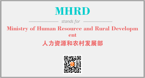 上述内容是“Ministry of Human Resource and Rural Development”作为“MHRD”的缩写,解释为“人力资源和农村发展部”时的信息,以及英文缩略词MHRD所代表的英文单词,其对应的中文拼音、详细解释以及在英文中的流行度和相关分类、应用领域及应用示例等。