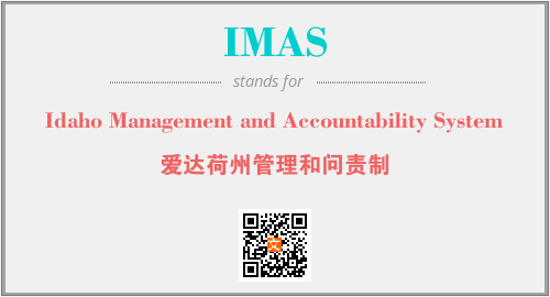 上述内容是“Idaho Management and Accountability System”作为“IMAS”的缩写,解释为“爱达荷州管理和问责制”时的信息,以及英文缩略词IMAS所代表的英文单词,其对应的中文拼音、详细解释以及在英文中的流行度和相关分类、应用领域及应用示例等。
