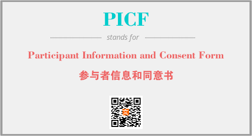 上述内容是“Participant Information and Consent Form”作为“PICF”的缩写,解释为“参与者信息和同意书”时的信息,以及英文缩略词PICF所代表的英文单词,其对应的中文拼音、详细解释以及在英文中的流行度和相关分类、应用领域及应用示例等。