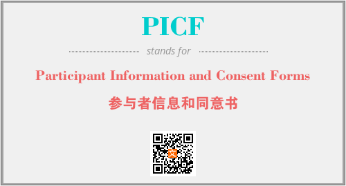 上述内容是“Participant Information and Consent Forms”作为“PICF”的缩写,解释为“参与者信息和同意书”时的信息,以及英文缩略词PICF所代表的英文单词,其对应的中文拼音、详细解释以及在英文中的流行度和相关分类、应用领域及应用示例等。