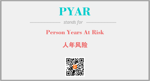 上述内容是“Person Years At Risk”作为“PYAR”的缩写,解释为“人年风险”时的信息,以及英文缩略词PYAR所代表的英文单词,其对应的中文拼音、详细解释以及在英文中的流行度和相关分类、应用领域及应用示例等。