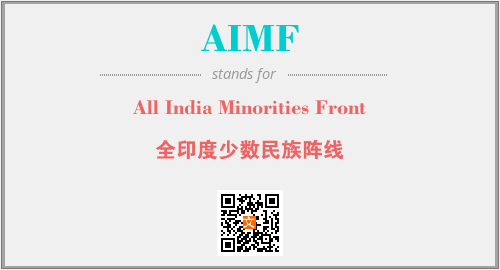 上述内容是“All India Minorities Front”作为“AIMF”的缩写,解释为“全印度少数民族阵线”时的信息,以及英文缩略词AIMF所代表的英文单词,其对应的中文拼音、详细解释以及在英文中的流行度和相关分类、应用领域及应用示例等。