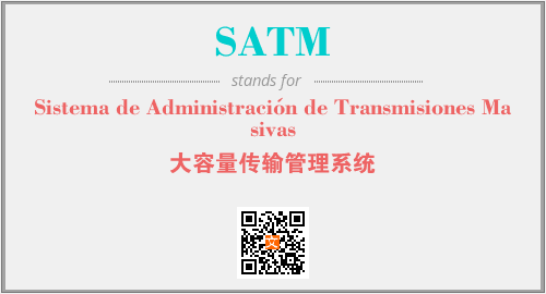 英文缩略词“SATM”经常作为“Sistema de Administración de Transmisiones Masivas”的英文缩写来使用,中文表示:“大容量传输管理系统”。本文将详细介绍英文缩写词SATM所代表英文单词,其对应的中文拼音、详细解释以及在英语中的流行度。此外,还有关于缩略词SATM的分类、应用领域及相关应用示例等。