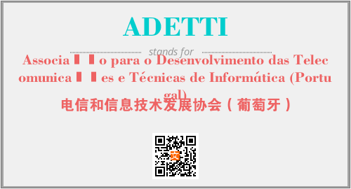 上述内容是“Associação para o Desenvolvimento das Telecomunicações e Técnicas de Informática (Portugal)”作为“ADETTI”的缩写,解释为“电信和信息技术发展协会(葡萄牙)”时的信息,以及英文缩略词ADETTI所代表的英文单词,其对应的中文拼音、详细解释以及在英文中的流行度和相关分类、应用领域及应用示例等。