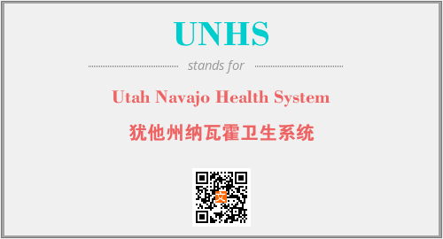上述内容是“Utah Navajo Health System”作为“UNHS”的缩写,解释为“犹他州纳瓦霍卫生系统”时的信息,以及英文缩略词UNHS所代表的英文单词,其对应的中文拼音、详细解释以及在英文中的流行度和相关分类、应用领域及应用示例等。