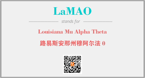 上述内容是“Louisiana Mu Alpha Theta”作为“LaMAO”的缩写,解释为“路易斯安那州穆阿尔法θ”时的信息,以及英文缩略词LaMAO所代表的英文单词,其对应的中文拼音、详细解释以及在英文中的流行度和相关分类、应用领域及应用示例等。