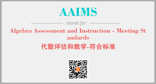 上述内容是“Algebra Assessment and Instruction - Meeting Standards”作为“AAIMS”的缩写,解释为“代数评估和教学-符合标准”时的信息,以及英文缩略词AAIMS所代表的英文单词,其对应的中文拼音、详细解释以及在英文中的流行度和相关分类、应用领域及应用示例等。