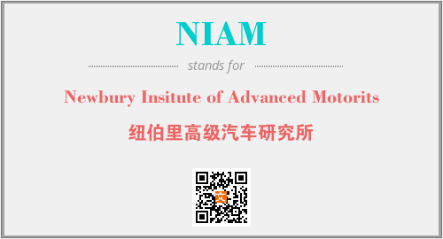 上述内容是“Newbury Insitute of Advanced Motorits”作为“NIAM”的缩写,解释为“纽伯里高级汽车研究所”时的信息,以及英文缩略词NIAM所代表的英文单词,其对应的中文拼音、详细解释以及在英文中的流行度和相关分类、应用领域及应用示例等。