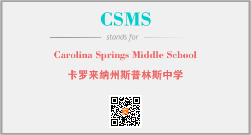 上述内容是“Carolina Springs Middle School”作为“CSMS”的缩写,解释为“卡罗来纳州斯普林斯中学”时的信息,以及英文缩略词CSMS所代表的英文单词,其对应的中文拼音、详细解释以及在英文中的流行度和相关分类、应用领域及应用示例等。
