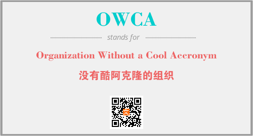 英文缩略词“OWCA”经常作为“Organization Without a Cool Accronym”的英文缩写来使用,中文表示:“没有酷阿克隆的组织”。本文将详细介绍英文缩写词OWCA所代表英文单词,其对应的中文拼音、详细解释以及在英语中的流行度。此外,还有关于缩略词OWCA的分类、应用领域及相关应用示例等。