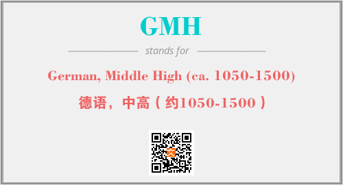 上述内容是“German, Middle High (ca. 1050-1500)”作为“GMH”的缩写,解释为“德语,中高(约1050-1500)”时的信息,以及英文缩略词GMH所代表的英文单词,其对应的中文拼音、详细解释以及在英文中的流行度和相关分类、应用领域及应用示例等。
