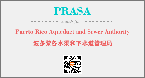 上述内容是“Puerto Rico Aqueduct and Sewer Authority”作为“PRASA”的缩写,解释为“波多黎各水渠和下水道管理局”时的信息,以及英文缩略词PRASA所代表的英文单词,其对应的中文拼音、详细解释以及在英文中的流行度和相关分类、应用领域及应用示例等。