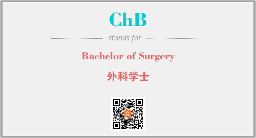 英文缩略词“ChB”经常作为“Bachelor of Surgery”的英文缩写来使用,中文表示:“外科学士”。本文将详细介绍英文缩写词ChB所代表英文单词,其对应的中文拼音、详细解释以及在英语中的流行度。此外,还有关于缩略词ChB的分类、应用领域及相关应用示例等。