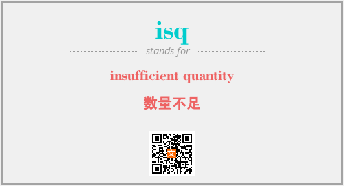 英文缩略词“isq”经常作为“insufficient quantity”的英文缩写来使用,中文表示:“数量不足”。本文将详细介绍英文缩写词isq所代表英文单词,其对应的中文拼音、详细解释以及在英语中的流行度。此外,还有关于缩略词isq的分类、应用领域及相关应用示例等。