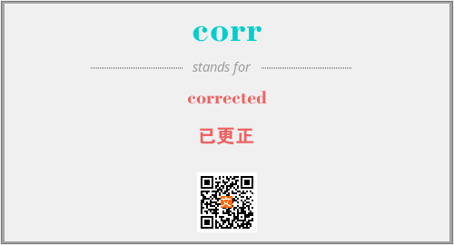 上述内容是“corrected”作为“corr”的缩写,解释为“已更正”时的信息,以及英文缩略词corr所代表的英文单词,其对应的中文拼音、详细解释以及在英文中的流行度和相关分类、应用领域及应用示例等。