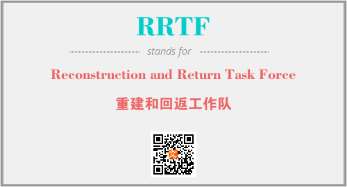 上述内容是“Reconstruction and Return Task Force”作为“RRTF”的缩写,解释为“重建和回返工作队”时的信息,以及英文缩略词RRTF所代表的英文单词,其对应的中文拼音、详细解释以及在英文中的流行度和相关分类、应用领域及应用示例等。