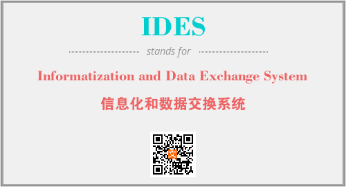 上述内容是“Informatization and Data Exchange System”作为“IDES”的缩写,解释为“信息化和数据交换系统”时的信息,以及英文缩略词IDES所代表的英文单词,其对应的中文拼音、详细解释以及在英文中的流行度和相关分类、应用领域及应用示例等。