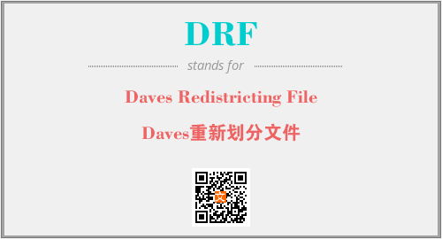 上述内容是“Daves Redistricting File”作为“DRF”的缩写,解释为“Daves重新划分文件”时的信息,以及英文缩略词DRF所代表的英文单词,其对应的中文拼音、详细解释以及在英文中的流行度和相关分类、应用领域及应用示例等。