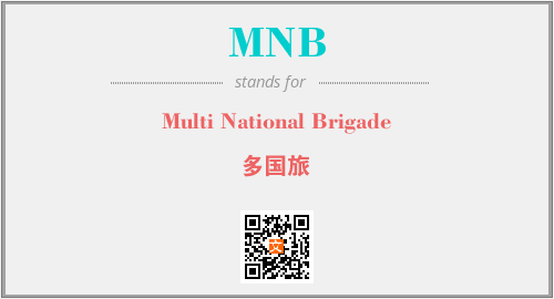 英文缩略词“MNB”经常作为“Multi National Brigade”的英文缩写来使用,中文表示:“多国旅”。本文将详细介绍英文缩写词MNB所代表英文单词,其对应的中文拼音、详细解释以及在英语中的流行度。此外,还有关于缩略词MNB的分类、应用领域及相关应用示例等。