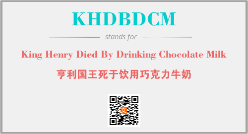 以上为King Henry Died By Drinking Chocolate Milk英文缩略词KHDBDCM的中文解释,以及该英文缩写在英语的流行度、分类和应用领域方面的信息。