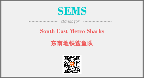上述内容是“South East Metro Sharks”作为“SEMS”的缩写,解释为“东南地铁鲨鱼队”时的信息,以及英文缩略词SEMS所代表的英文单词,其对应的中文拼音、详细解释以及在英文中的流行度和相关分类、应用领域及应用示例等。